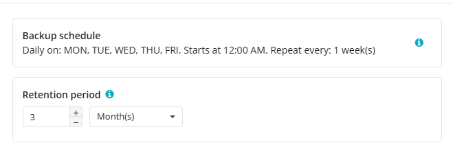 If the Advanced schedule was selected, specify the retention period for the backup plan.