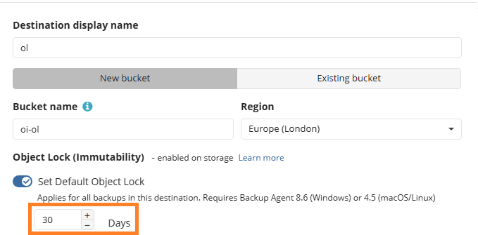 Consider, that the Default Object Lock should only be allowed for storage account with enabled Object Lock. This should be done on the storage account side. After enabling Object Lock on the storage account side, you can enable it in Management Console for the existing destination or create a new storage account and enable Default Object Lock for it.