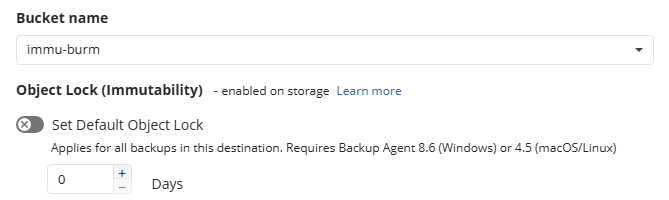- Allow Default Object Lock for backup destinations