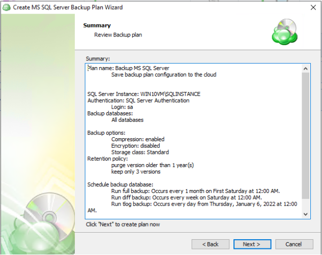 Select the Run backup now checkbox to execute the backup plan immediately.