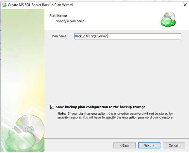 The Save backup plan configuration to the backup storage option allows you easily restore the backup plan to another destination if necessary.