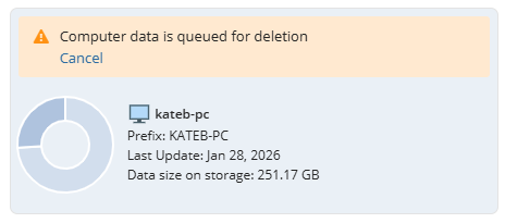 - Entire computer's backup data can be deleted using Organization > Users grid along with the computer deletion