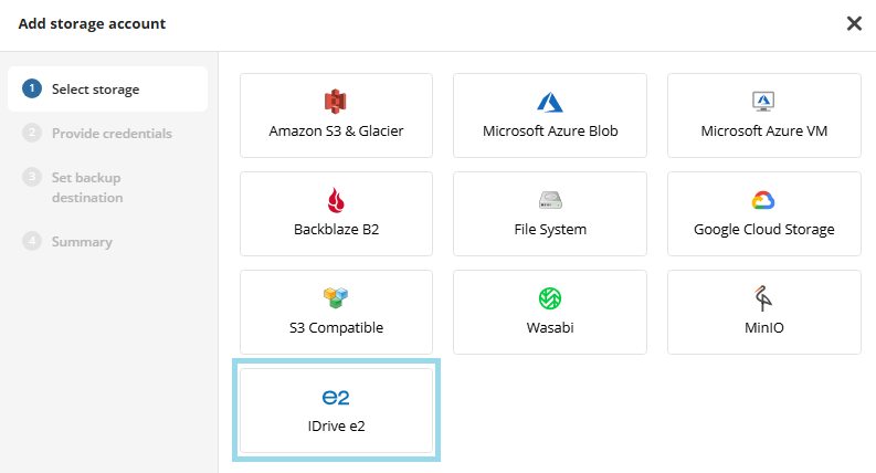 - Select IDrive e2. Click Next.