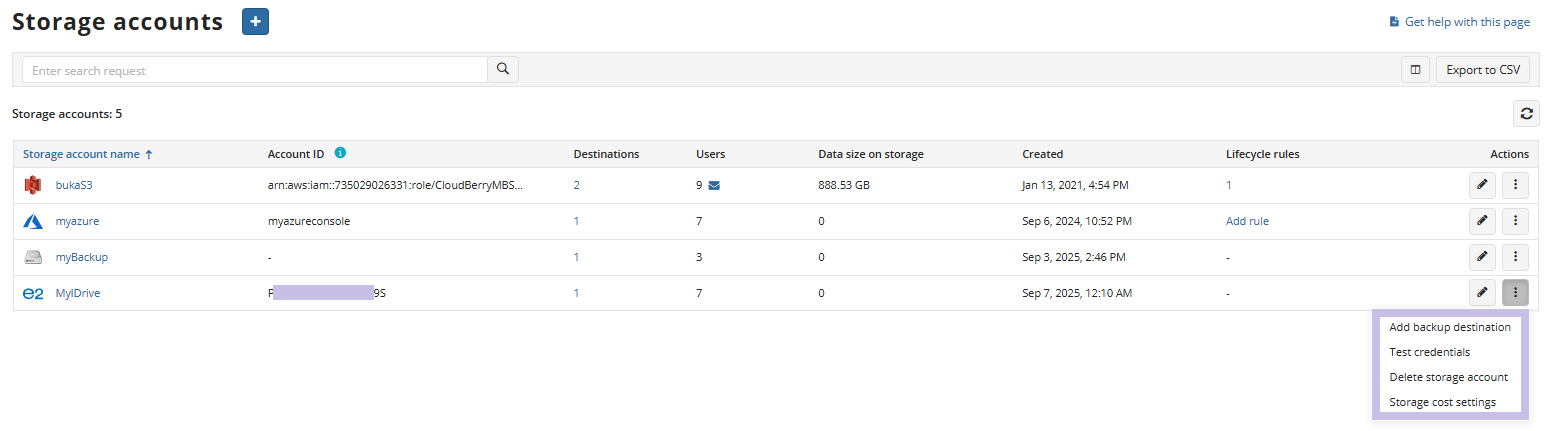 Refer to Manage Storage Accounts for more information on how to manage the added IDrive e2 storage account.
