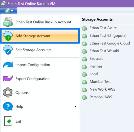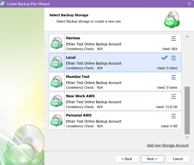 Once the storage account is added, you will be able to select it as a destination in the Backup Plan wizard.