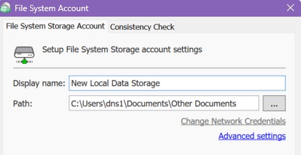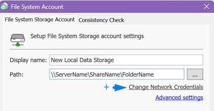 - Specify storage account's name and path to a folder on a local disk (e.g., D:\Backups) or a network-shared folder using a UNC path (e.g., \NAS\SharedBackup; make sure to also check the credentials' validity):