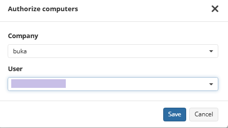 - In the Computers grid find the computer. In the Company & User Account column, click Authorize or Pending.