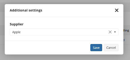 Additional settings allow you to set supplier.