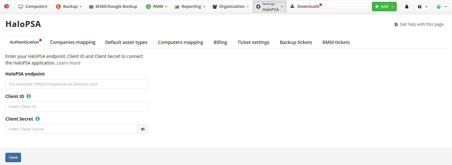 To get started, go to Settings > Integrations > HaloPSA in your Management Console.