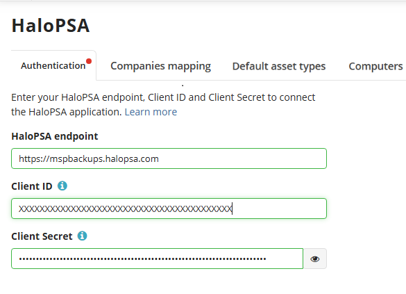 - (Mandatory) Map companies to your HaloPSA customers to create mapping between the companies and HaloPSA customers.