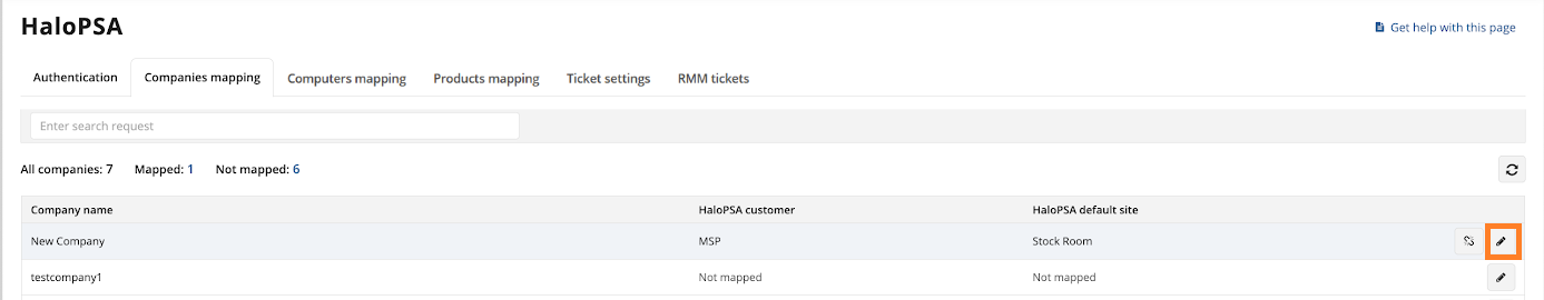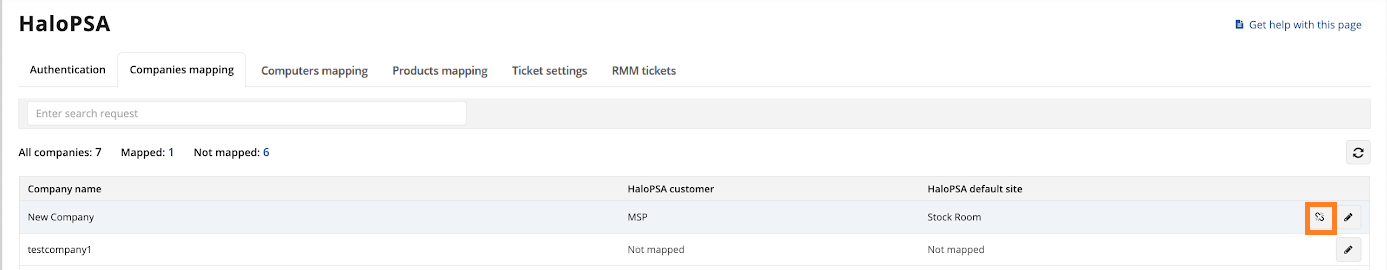 Only computers included in the company mapped with HaloPSA customers can be mapped with HaloPSA assets. To create mapping of a HaloPSA customer to the Management Console company, perform the following: