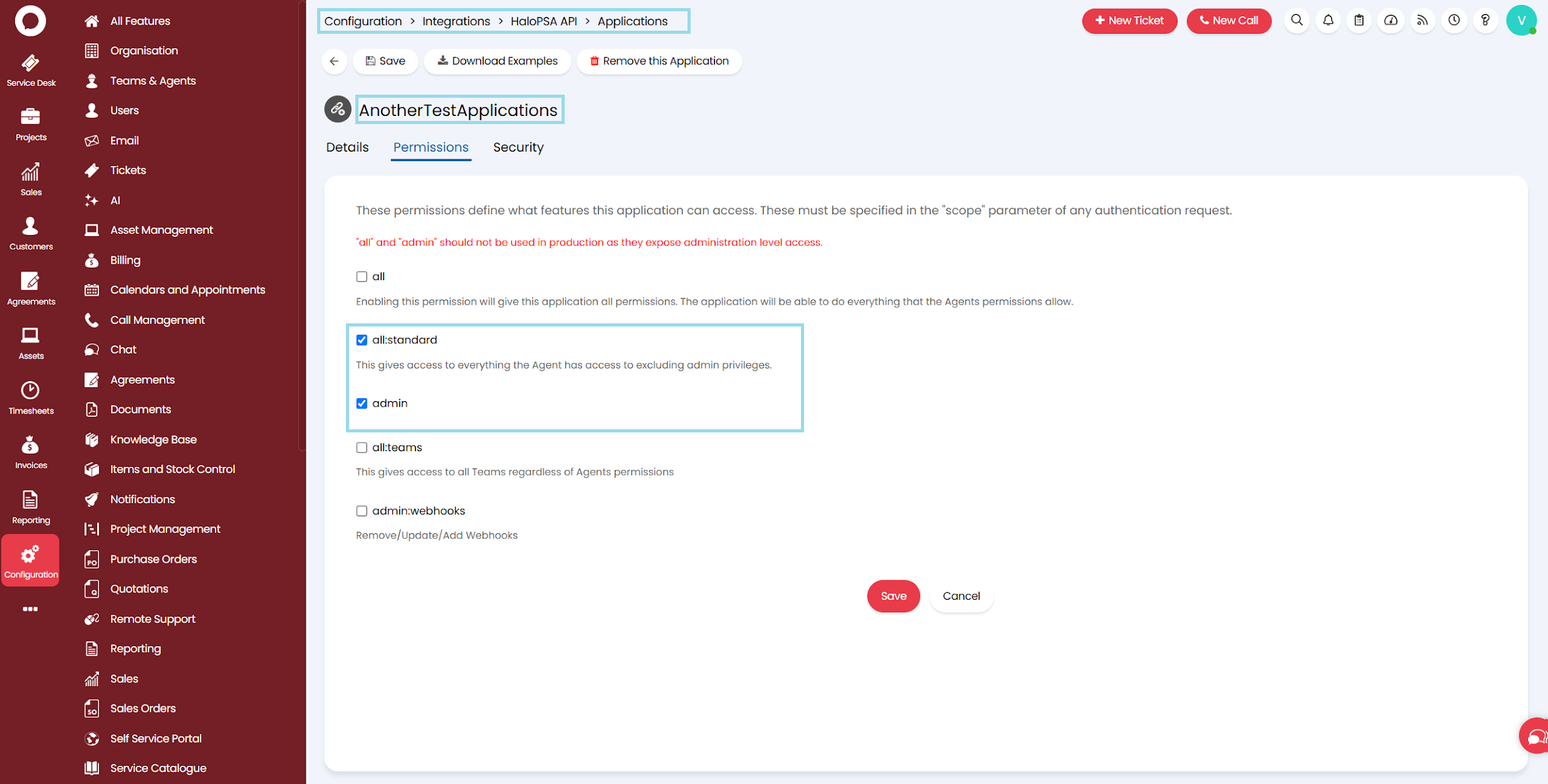 You must have Admin access to your HaloPSA account to create integration. Later you can use more granular permissions for HaloPSA Agent and HaloPSA Application.