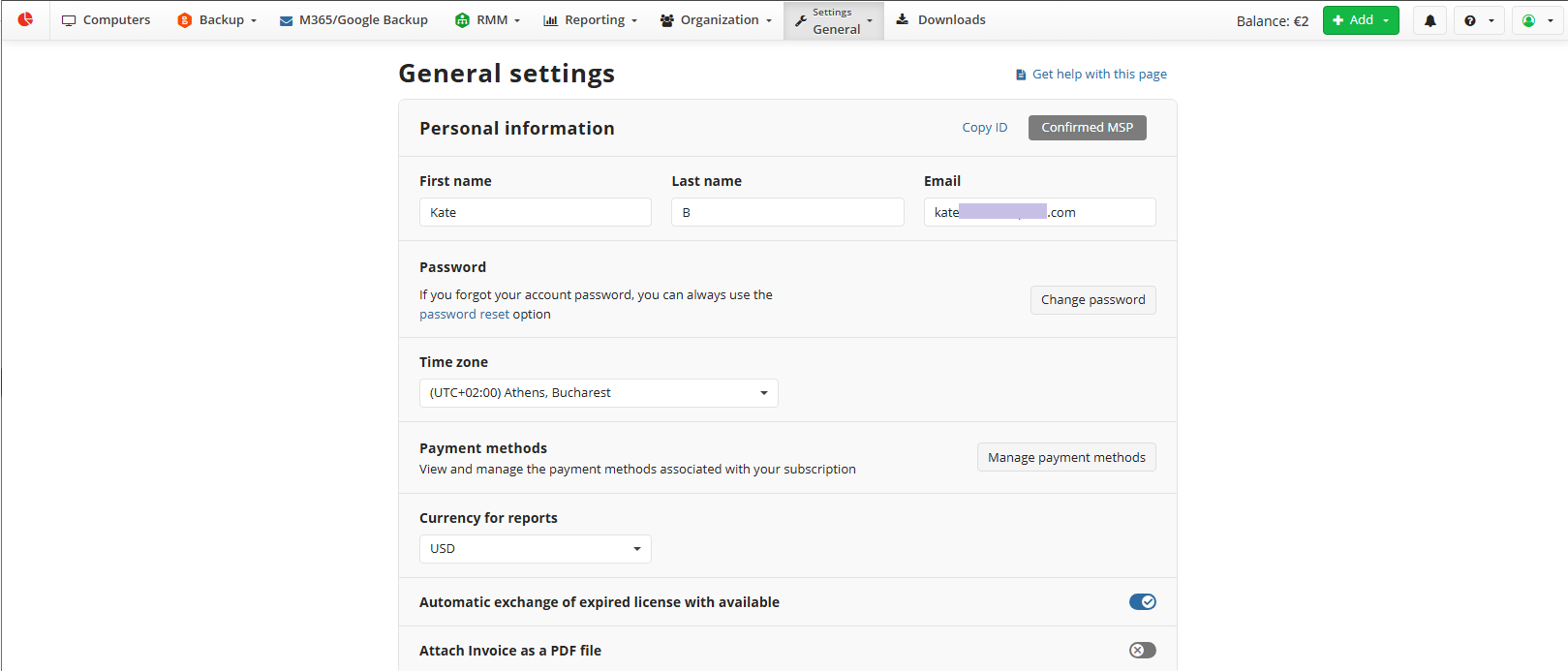 - Go to Settings > General, then click Manage payment methods in the Personal information section to view and manage your payment method.