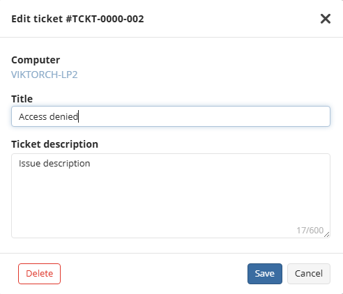 Tickets can only be edited by the administrators who have created the ticket. To edit a ticket, expand the ticket actions and select Edit.