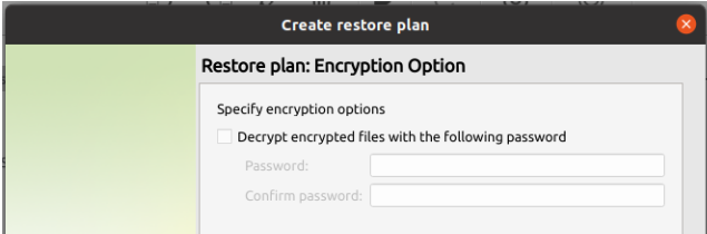 - After selecting the destination and any associated options, you will be prompted to provide the password to decrypt the restored data.