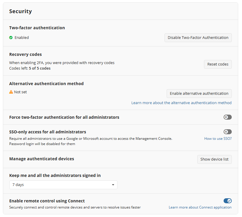 - Click the Disable Two-Factor Authentication (2FA) button, then confirm this action with 2FA verification code from your authenticator app or with 2FA recovery code.